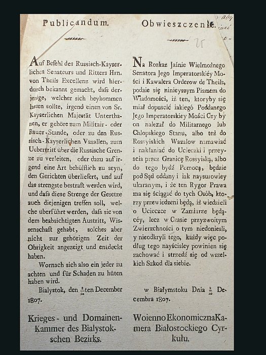 Kamera Wojny i Domen 1795-1807. Obwieszczenie o karach za nielegalne przekroczenie granicy, sygn. 2200, k. 25