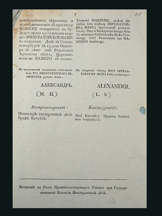 Kamera Wojny i Domen 1795-1807. Przyłączenie Obowdu białostockiego do Rosji w 1807 r., sygn. 2200, k. 10