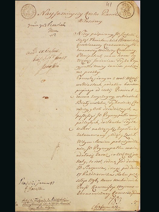 Kamera Wojny i Domen w Białymstoku 1795-1807. List Izabeli Branickiej do króla pruskiego w sprawie podatku, sygn. 2450, k. 41