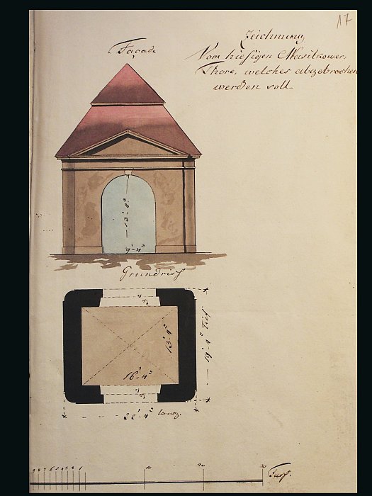 Kamera Wojny i Domen w Białymstoku 1795-1807. Rysunek Bramy Wasilkowskiej w Białymstoku sygn. 2284, k. 17