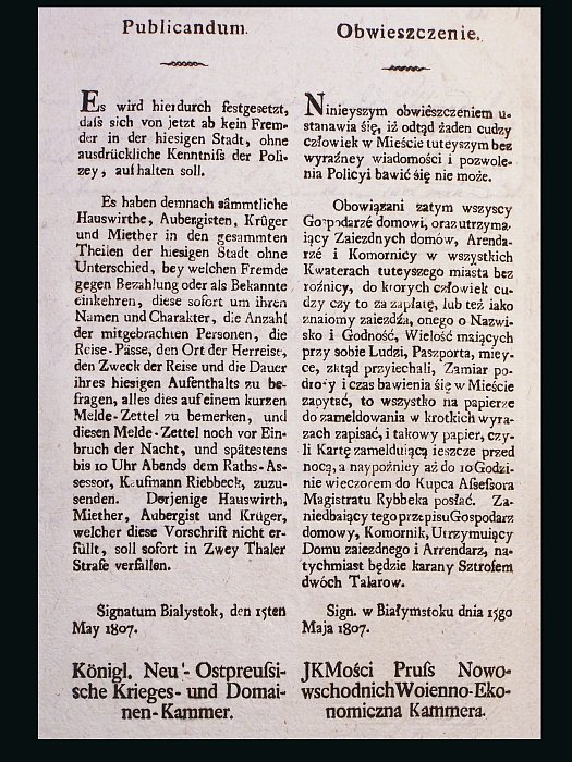 Kamera Wojny i Domen w Białymstoku 1795-1807. Ogłoszenie o obowiązku informowania władz o przybywających gościach, sygn. 2289, k. 22