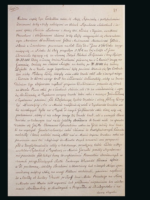 Kamera Wojny i Domen w Białymstoku 1795-1807. Pismo Jana Klemensa Branickiego, sygn. 2450, k. 81