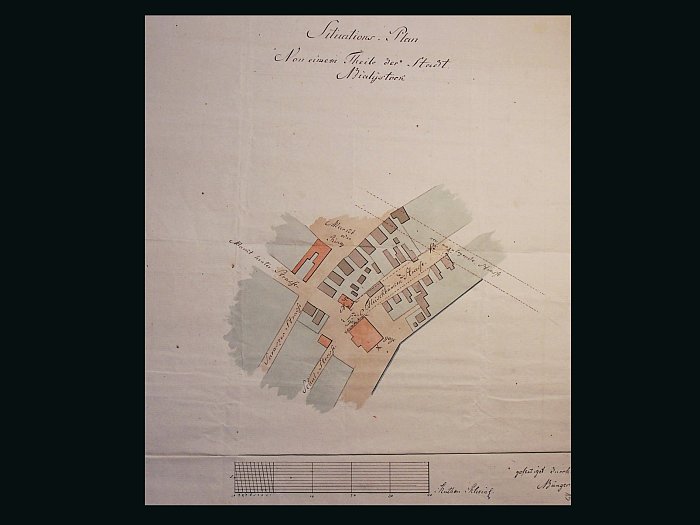 Kamera Wojny i Domen w Białymstoku 1795-1807. Plan sytuacyjny Białegostoku z zaznaczoną synagogą, sygn. 2468, k.45